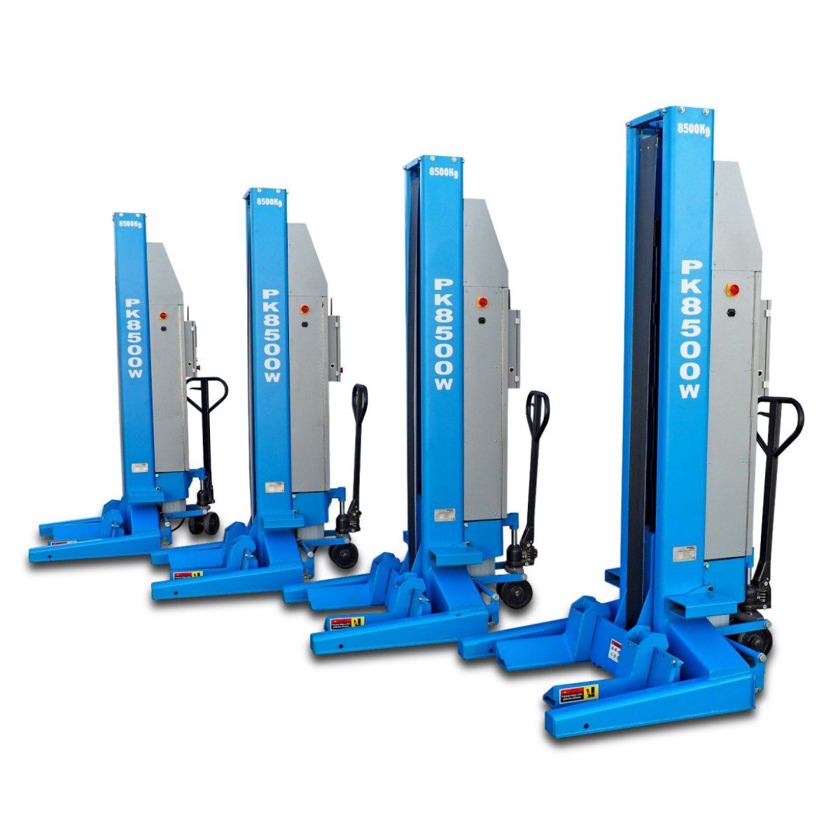 Dette mobile liftsystem kan kombineres med 2, 4, 6, 8+ søjler, og hver søjle kan hæves eller sænkes individuelt, parvis eller alle søjler sammen.
