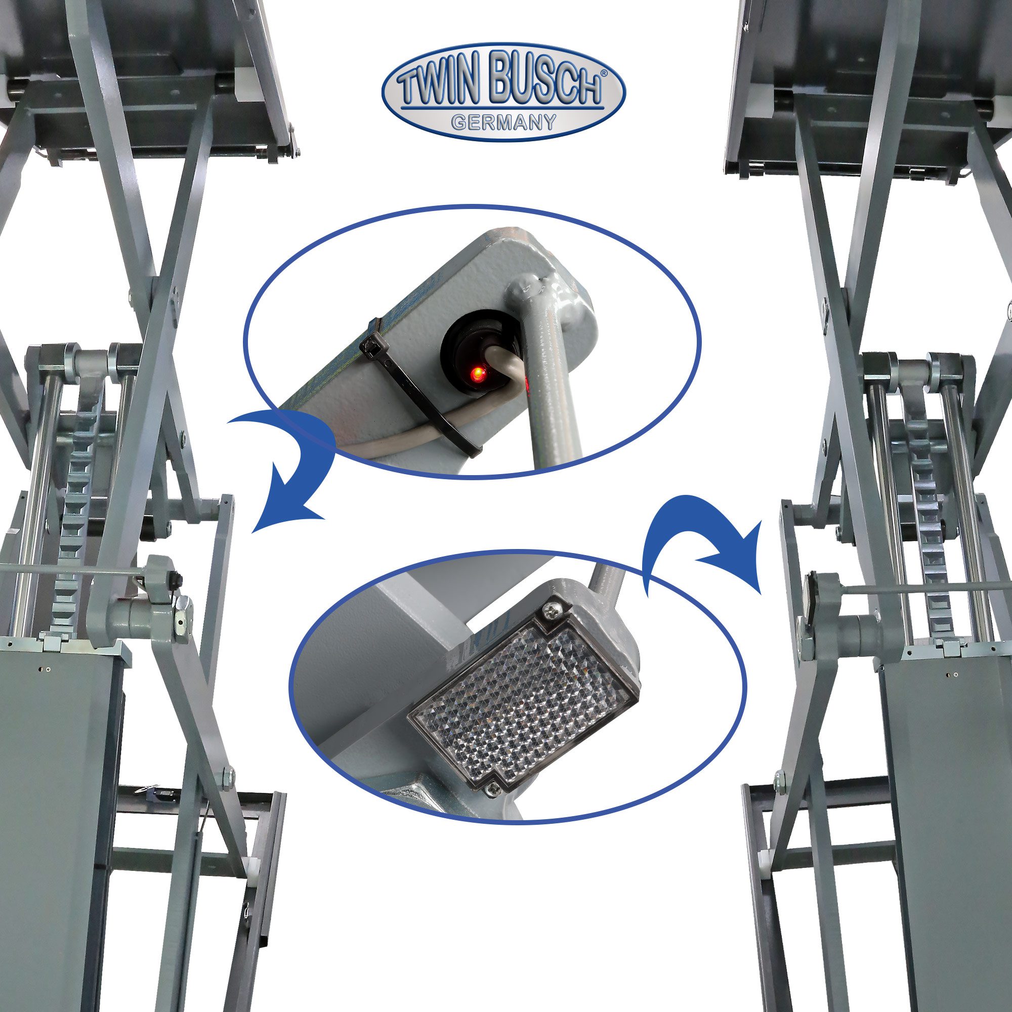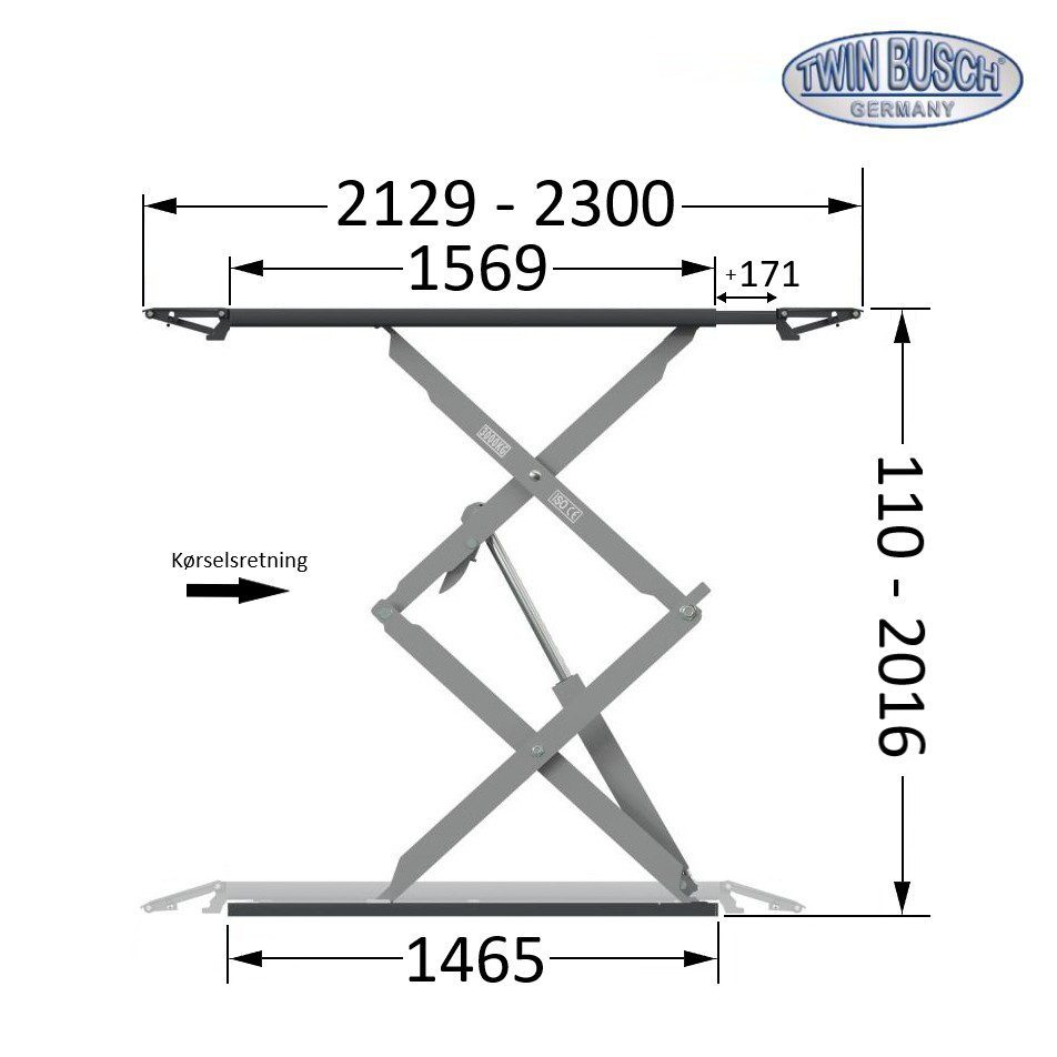 TwinBusch PROFI saxlift 3500 kg – Gulvmonteret sakselift med løftehøjde over 2 meter